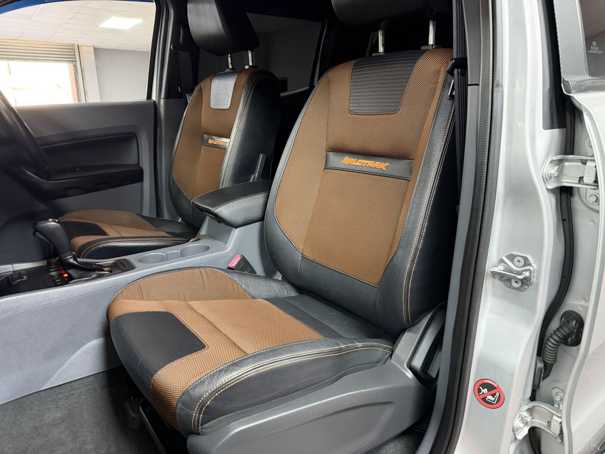 Finished in Moondust Silver Metallic with Wildtrak Black half leather upholstery with orange stitching with a satin grey fascia trim and inlays.