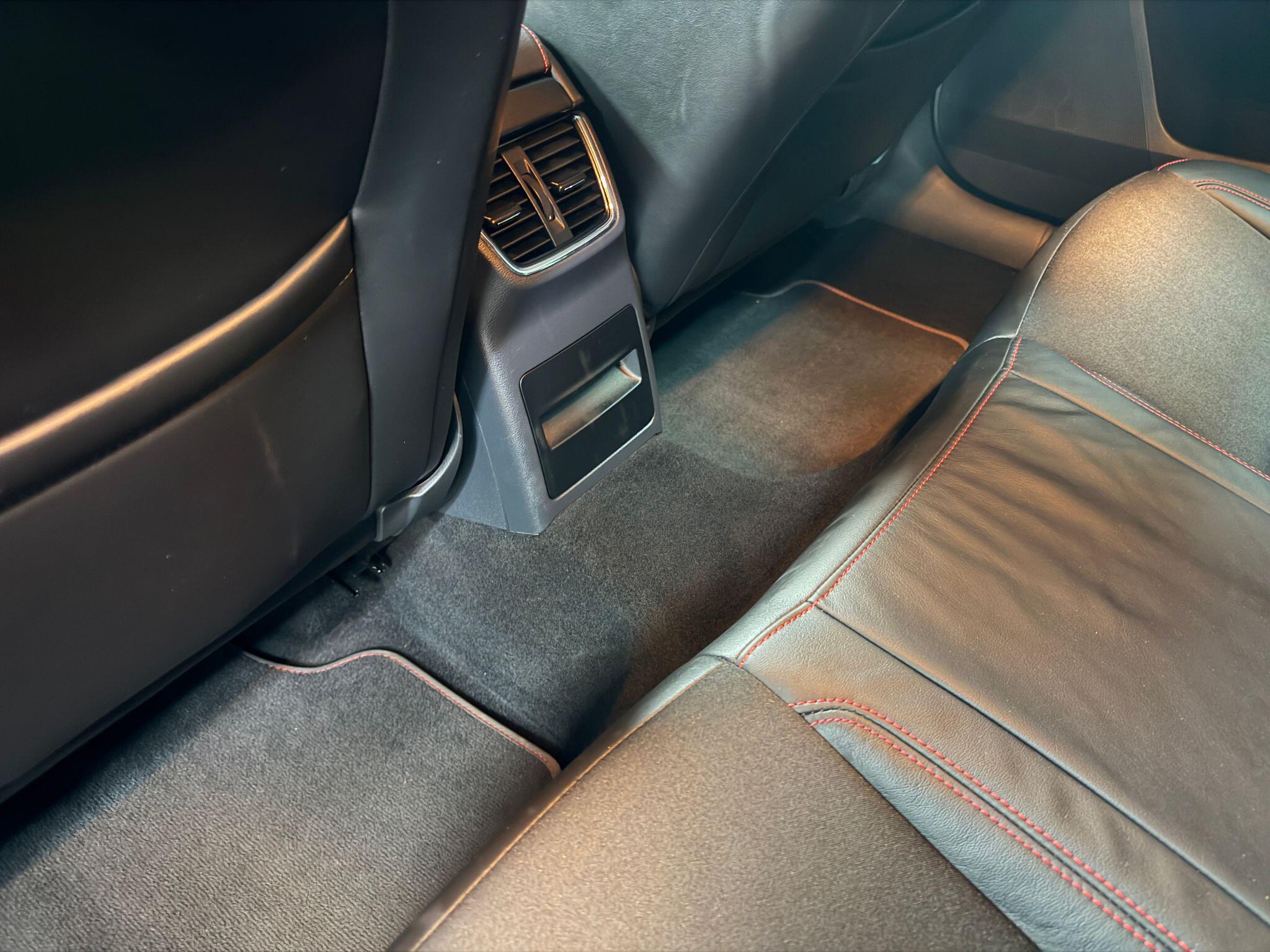 - Flat-bottom VRS leather multi-functional steering wheel with red stitching